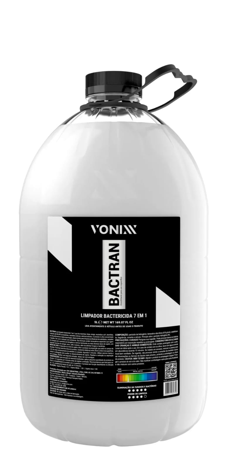 Bactran é um limpador bactericida ultra concentrado da Vonixx, desenvolvido para limpeza profissional de estofados, carpetes e tapetes, prometendo eliminar até 99,9% das bactérias e manchas difíceis.