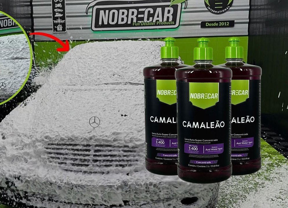 O Camaleão Nobrecar é um shampoo automotivo ultraprovado, desenvolvido para proporcionar uma limpeza profunda e eficaz de veículos, sendo super concentrado e seguro para diversas superfícies.