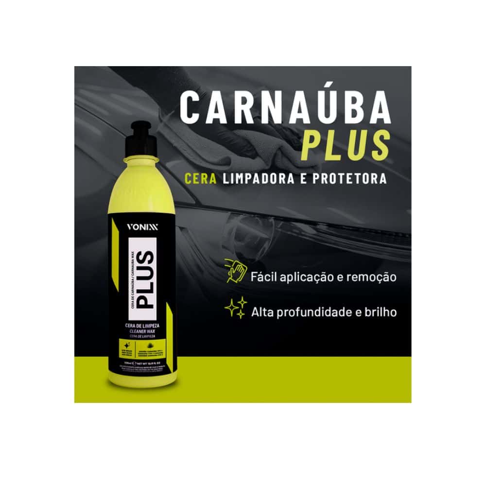 A Carnaúba Plus 500ml da Vonixx é uma cera automotiva limpadora e protetora, que oferece brilho profundo e proteção de até 30 dias para a pintura do veículo. É um produto popular, com avaliações de usuários geralmente positivas que destacam sua eficácia e bom custo-benefício.