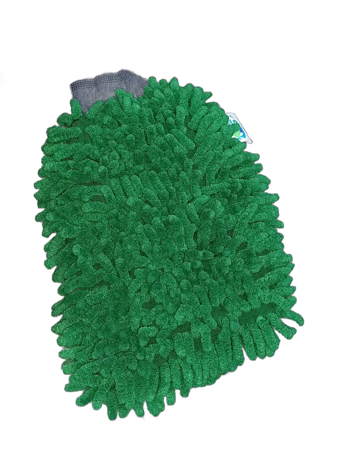 Luva 90 GSM Dupla Face: Uma luva de microfibra, provavelmente para lavagem do veículo, com boa capacidade de reter espuma e sujeira.