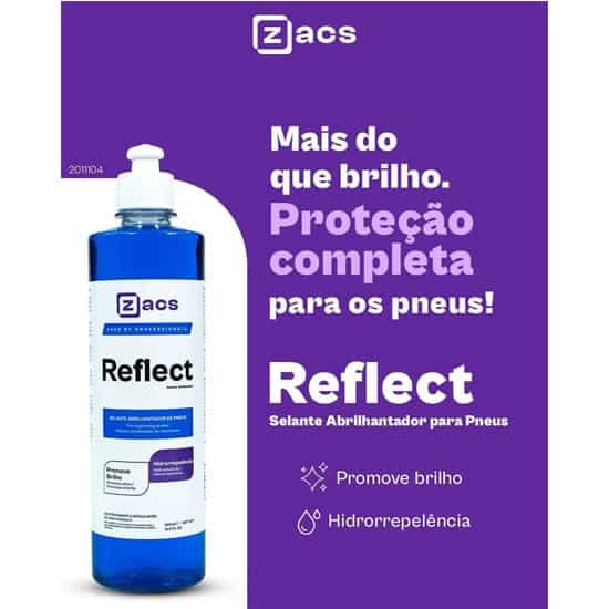 Reflect 500ml da Zacs é um selante abrilhantador de pneus que oferece brilho intenso, proteção duradoura e hidrorrepelência por até 45 dias, mantendo os pneus com aparência renovada e visual impecável.