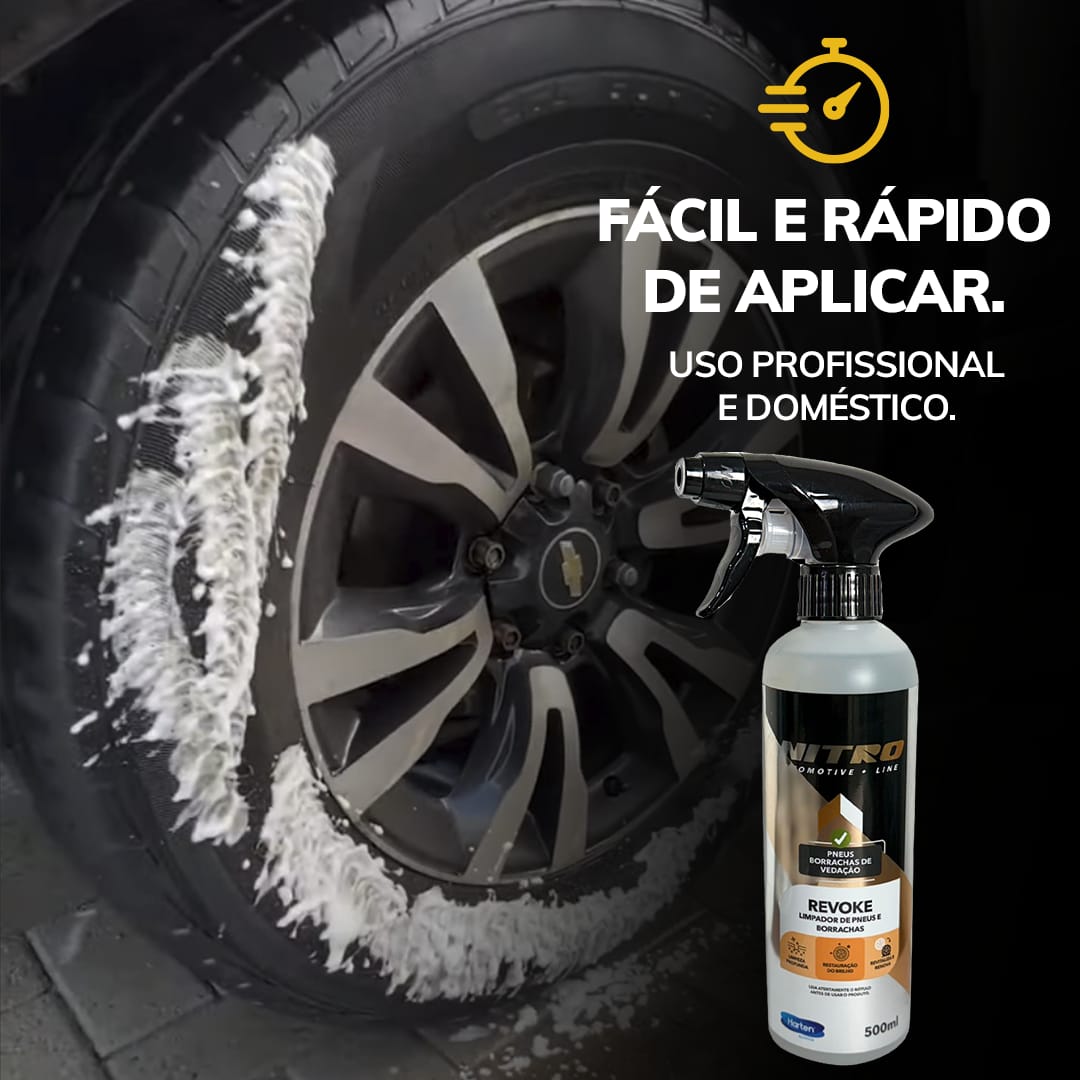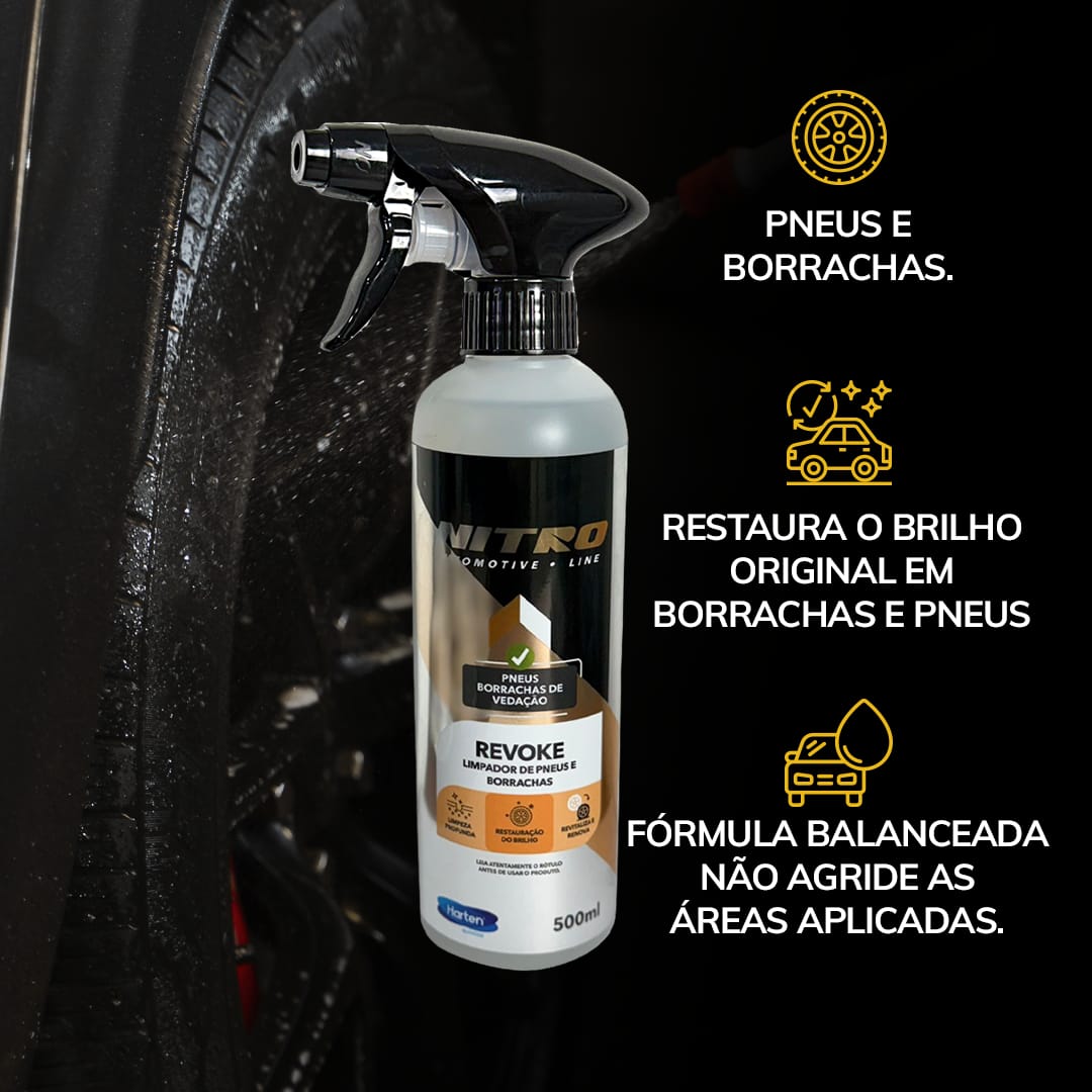 O Revoke Limpa Pneu e Borracha Nitro 500ml é um limpador automotivo de alta performance, desenvolvido pela marca Nitro Automotive, projetado para realizar a limpeza profunda de pneus e outras superfícies de borracha.
